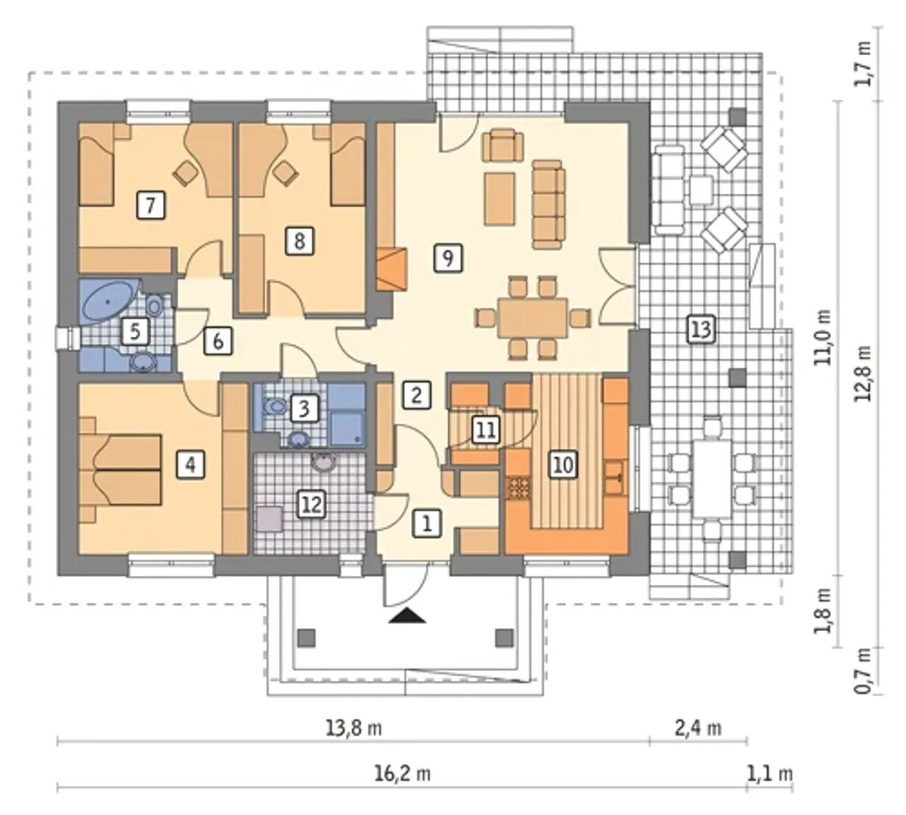 Kupując projekt w technologii murowanej powinieneś budować dom murowany. Zupełna zmiana technologii na szkieletową wymaga przeprojektowania całego budynku ( zmieniają się obciążenia, fundamenty, konstrukcja dachu). Wydamy zgodę na takie przeprojektowanie jednak wiążę się to z dużymi kosztami. Istnieją firmy wykonawcze, które podejmują się zmiany technologii budowy bezpłatnie przy skorzystaniu z ich usług wykonawczych. Zdarza się, że pracownia architektoniczna przygotowuje warianty konkretnego projektu przewidując także inne technologie. Prosimy o sprawdzenie czy istnieje poszukiwana wersja projektu, w zakładce - warianty projektu.