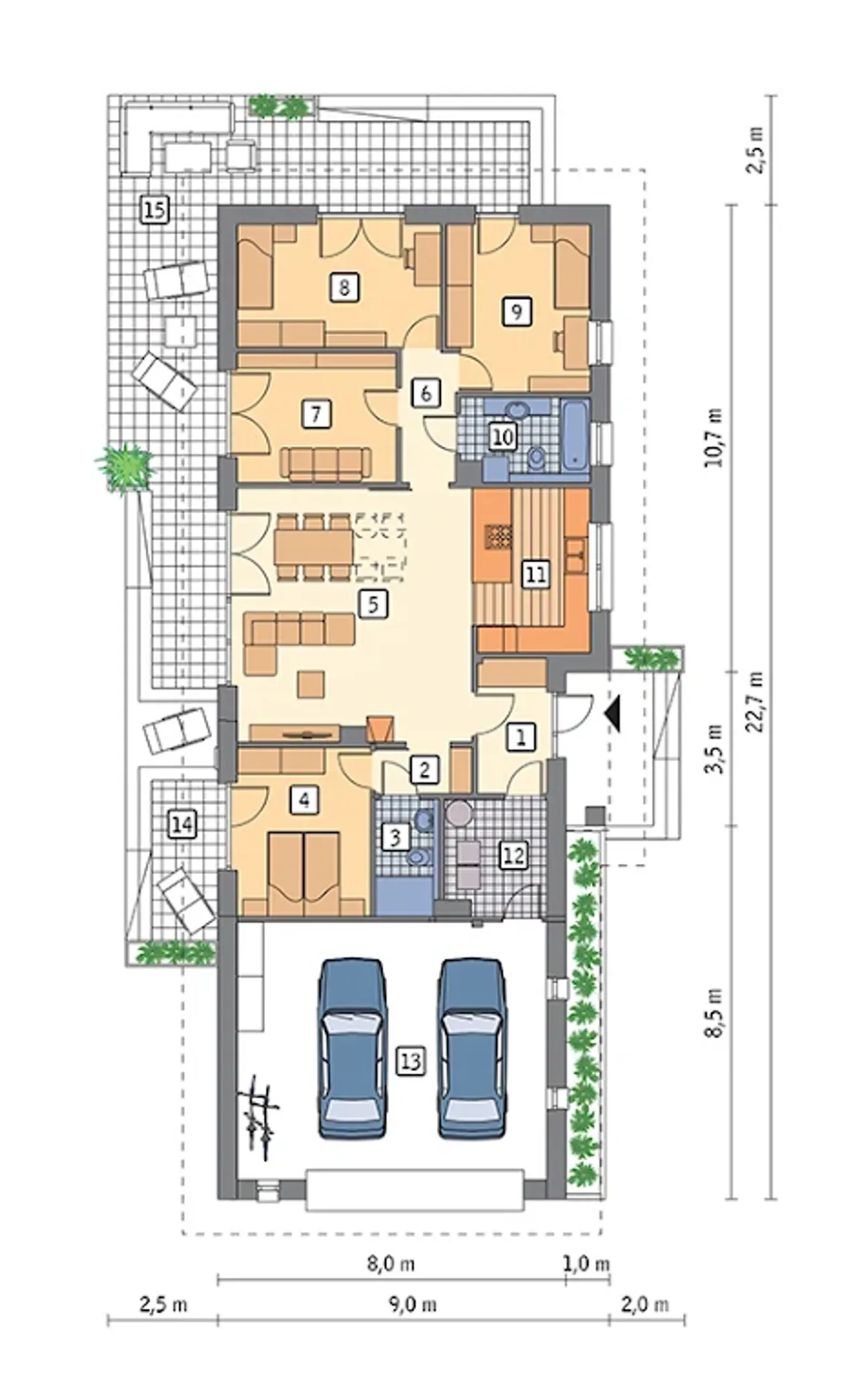Wypełnij formularz i otrzymaj rysunki w pdf z dokładnymi wymiarami budynku i pomieszczeń (długość, szerokość, wysokość) dla projektu Zachodzące słońce - wariant V - M230e