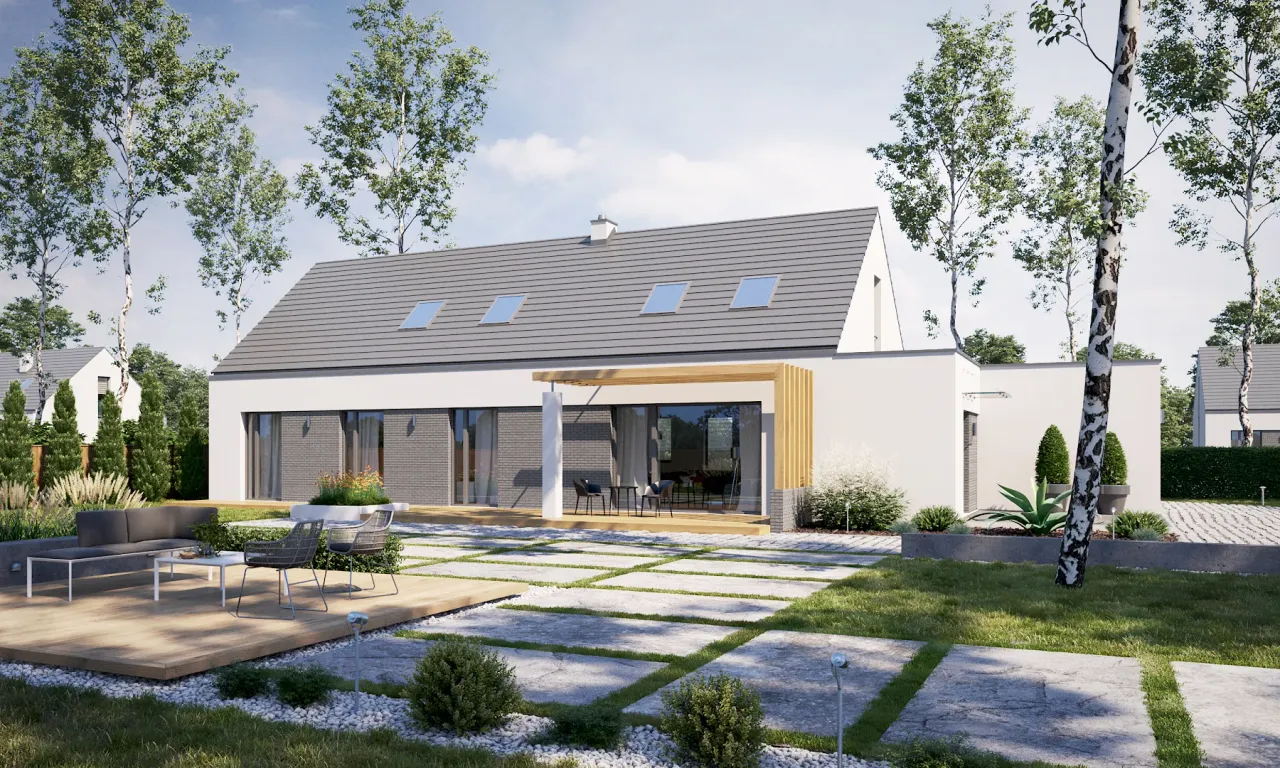 Kupując projekt w technologii murowanej powinieneś budować dom murowany. Zupełna zmiana technologii na szkieletową wymaga przeprojektowania całego budynku ( zmieniają się obciążenia, fundamenty, konstrukcja dachu). Wydamy zgodę na takie przeprojektowanie jednak wiążę się to z dużymi kosztami. Istnieją firmy wykonawcze, które podejmują się zmiany technologii budowy bezpłatnie przy skorzystaniu z ich usług wykonawczych. Zdarza się, że pracownia architektoniczna przygotowuje warianty konkretnego projektu przewidując także inne technologie. Prosimy o sprawdzenie czy istnieje poszukiwana wersja projektu, w zakładce - warianty projektu.