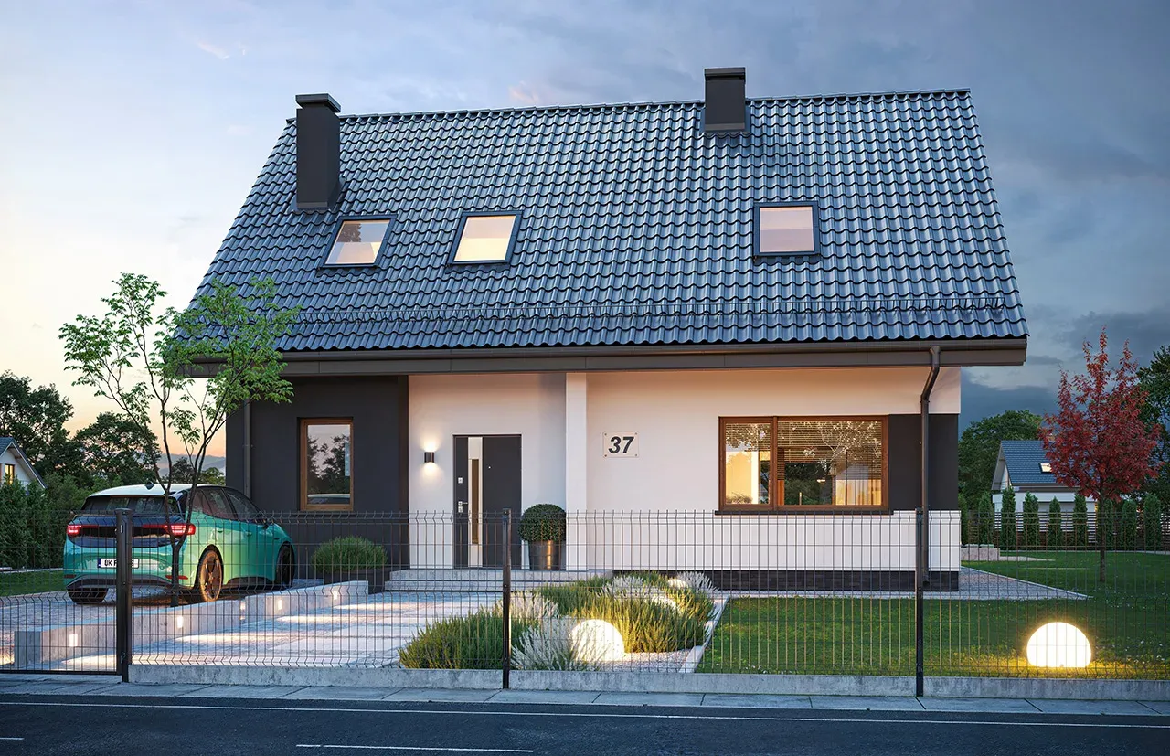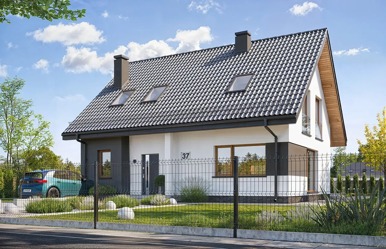 - Pokrycie dachu: dachówka.