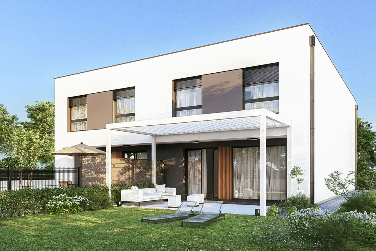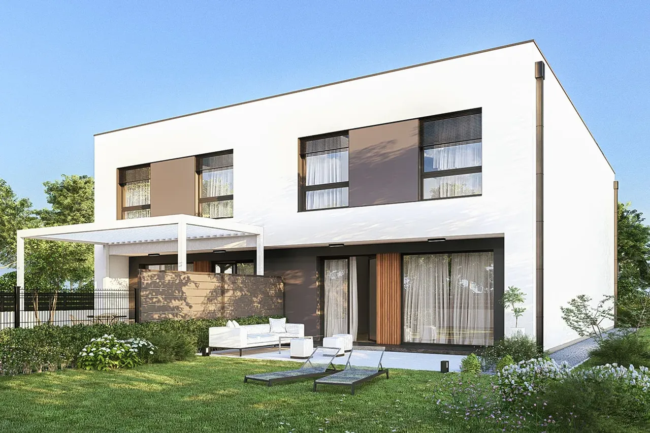 Projekt Zenit - dwulokalowy L.LL to interesująca propozycja dla osób planujących budowę domu dla dwóch rodzin. Architektura budynku jest nowoczesna i estetyczna, co w połączeniu z funkcjonalnym rozkładem pomieszczeń sprawia, że dom spełnia oczekiwania wielu użytkowników. Projekt przewiduje oddzielne wejścia dla obu lokali, co zapewnia prywatność i niezależność mieszkańców. Wnętrza są przestronnie zaplanowane, z myślą o wygodzie domowników. Warte uwagi są również duże okna, które pozwalają na dobre doświetlenie pomieszczeń naturalnym światłem. Idealna opcja dla tych, którzy szukają praktycznego i przemyślanego układu domu dla dwóch rodzin.