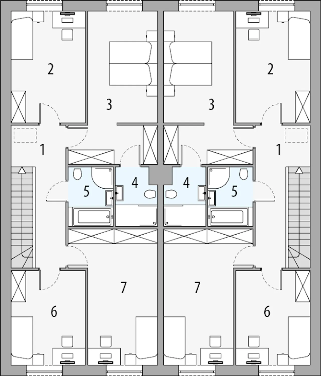 Wypełnij formularz i otrzymaj rysunki w pdf z dokładnymi wymiarami budynku i pomieszczeń (długość, szerokość, wysokość) dla projektu Zenit - dwulokalowy L.LL