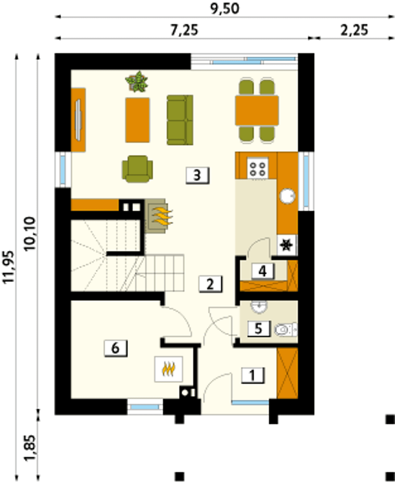 Długość budynku 11.95 m |