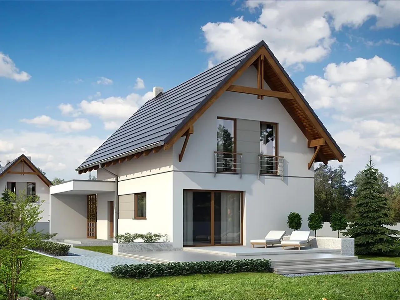 Gotowy projekt domu o nazwie Zeo 3 (KO) to budynek całoroczny , zaprojektowany w technologii murowanej - tradycyjnej. Elewacja budynku wykończona jest w stylu nowoczesnym, natomiast dom pokryty jest dachem dwuspadowym. Projekt domu Zeo 3 (KO) zmieści się na działkę o szerokości 18.1, jego powierzchnia użytkowa 93.9 obejmuje parter oraz poddasze budynku. W projekcie Zeo 3 (KO) nie ma garażu (prosimy o sprawdzenie w innych wersjach projektu Zeo 3 (KO)).Jest to dom energooszczędny.z kominkiem,bez piwnicy.