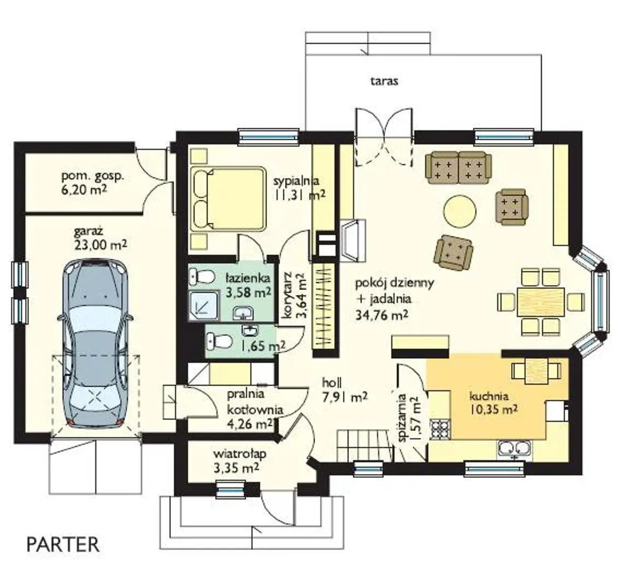5. Pokój dzienny + jadalnia | 34,76 m² |