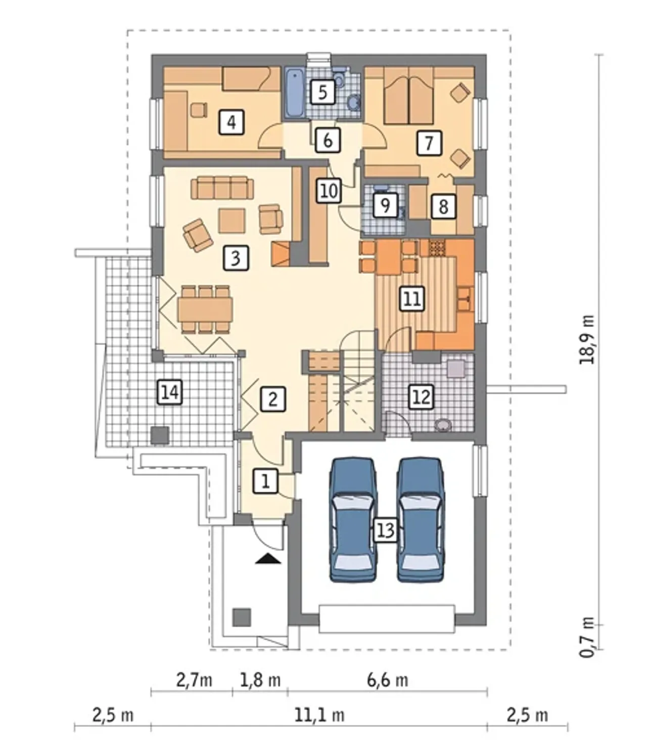 Wypełnij formularz i otrzymaj rysunki w pdf z dokładnymi wymiarami budynku i pomieszczeń (długość, szerokość, wysokość) dla projektu Zielone pola - wariant I - M88a