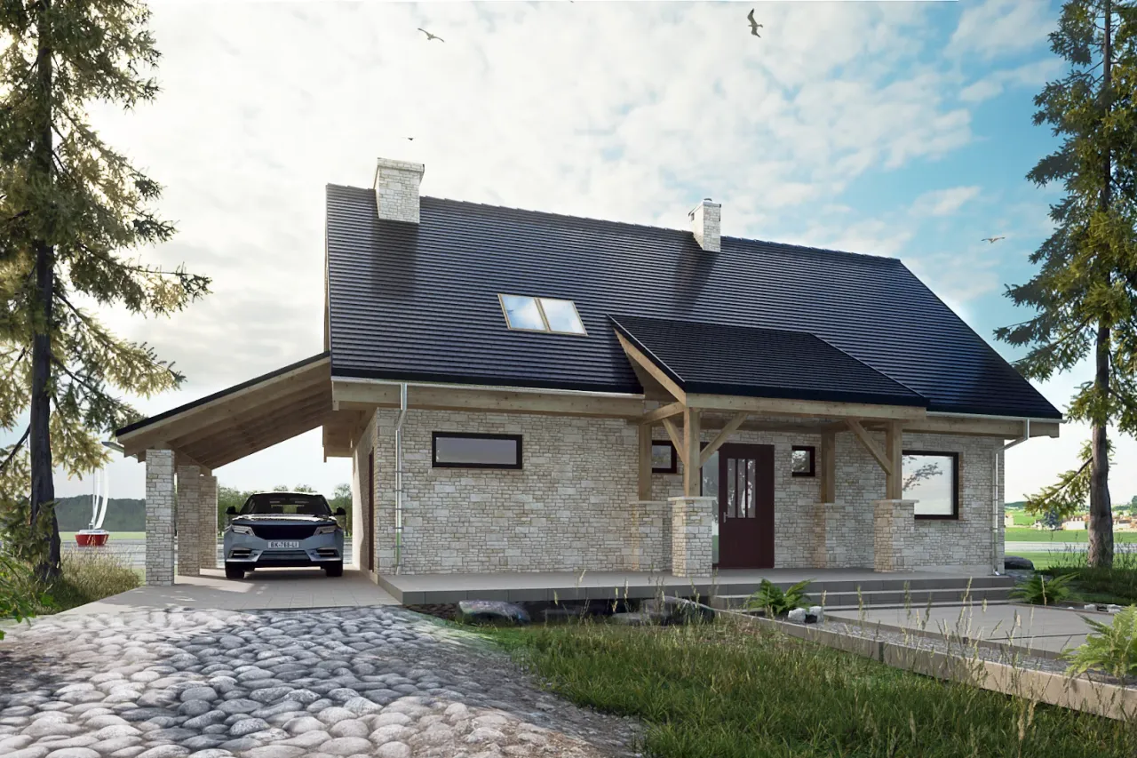 Wypełnij formularz i otrzymaj rysunki w pdf z dokładnymi wymiarami budynku i pomieszczeń (długość, szerokość, wysokość) dla projektu Ziomek z wiatą A1