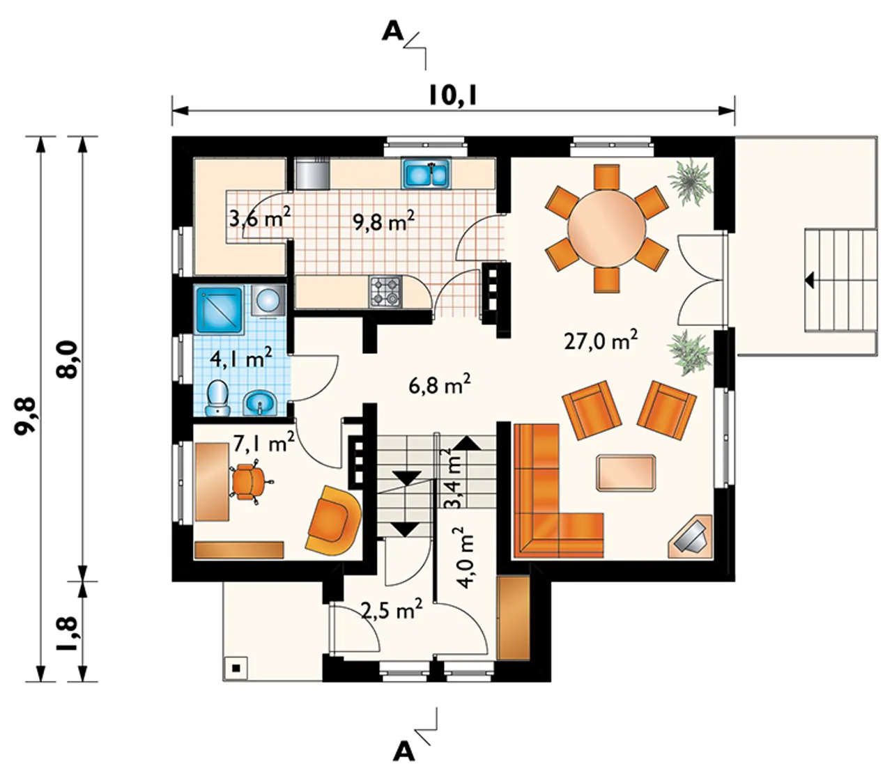 - elewacje - pokazują dokładny wygląd domu od frontu, z tyłu i z boków
