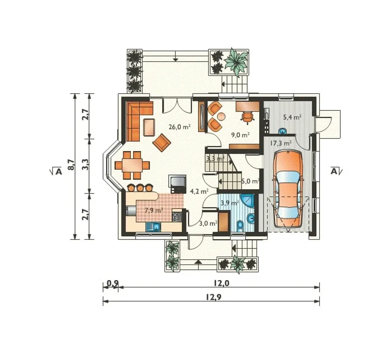 Szerokość budynku 12.9 m |