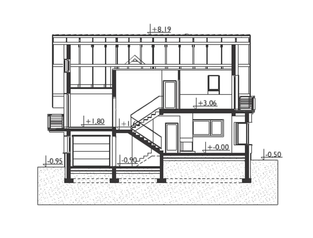 - przekroje - pokazują wszystkie elementy budynku po przecięciu go wzdłuż lub w poprzek od dachu do fundamentów tj. warstwy podłogi, stropów i dachu
