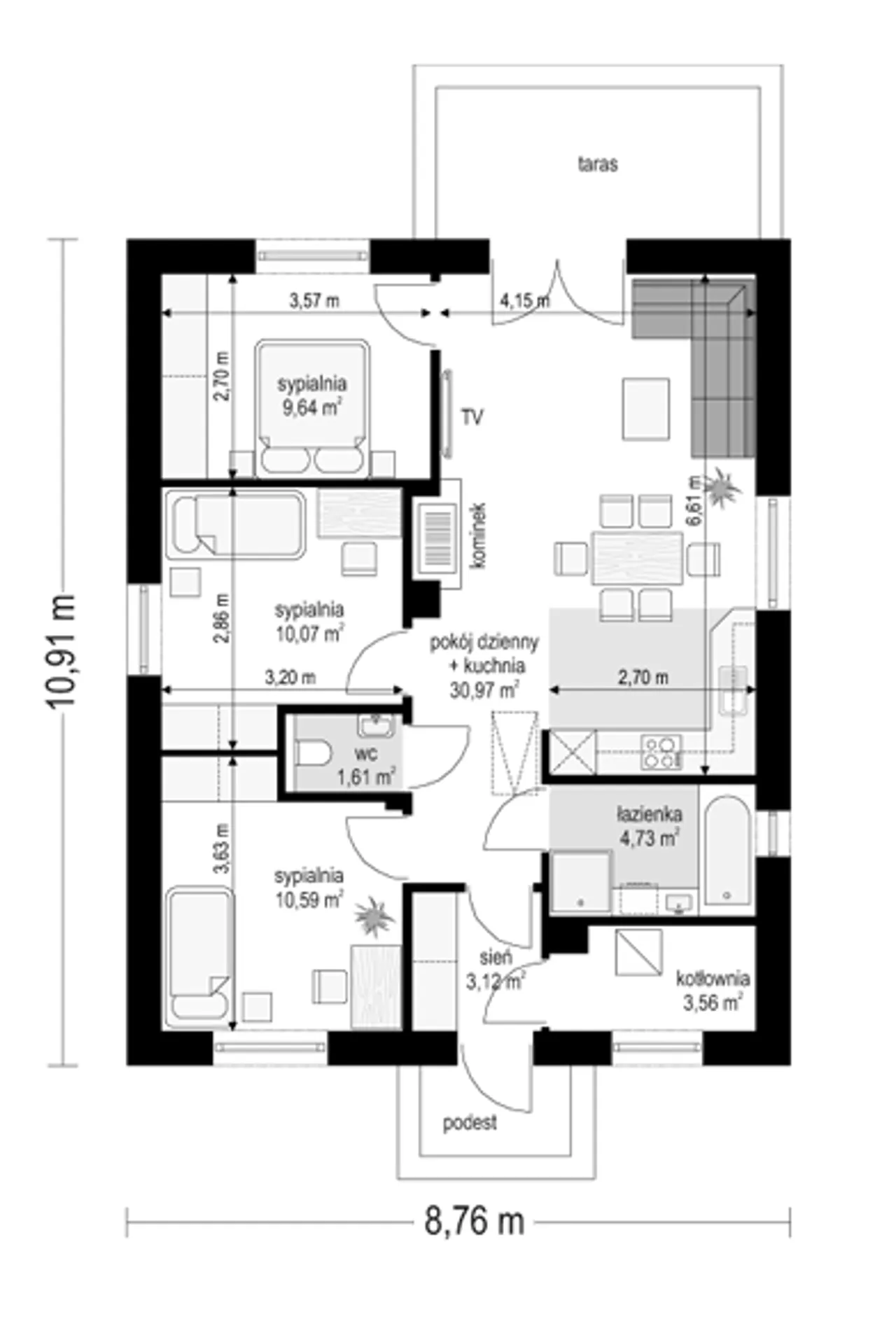 Szerokość budynku 8.76 m |