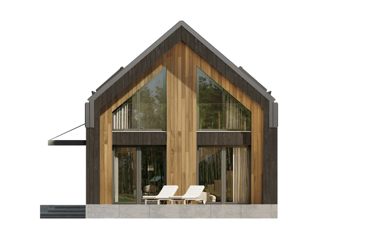 Zamówienie projektu Zuza drewniana to krok w stronę nowoczesnej architektury, w której bezpieczeństwo, oszczędność i design harmonijnie współgrają z ergonomią. Bryła domu zaprojektowana została na rzucie prostokąta z kalenicą ustawioną równolegle do drogi, co świetnie wpasuje się w większość działek. Dach dwuspadowy o nachyleniu 40°, wykończony dachówką lub blachodachówką, gwarantuje trwałość oraz bezproblemowe użytkowanie przez dekady.