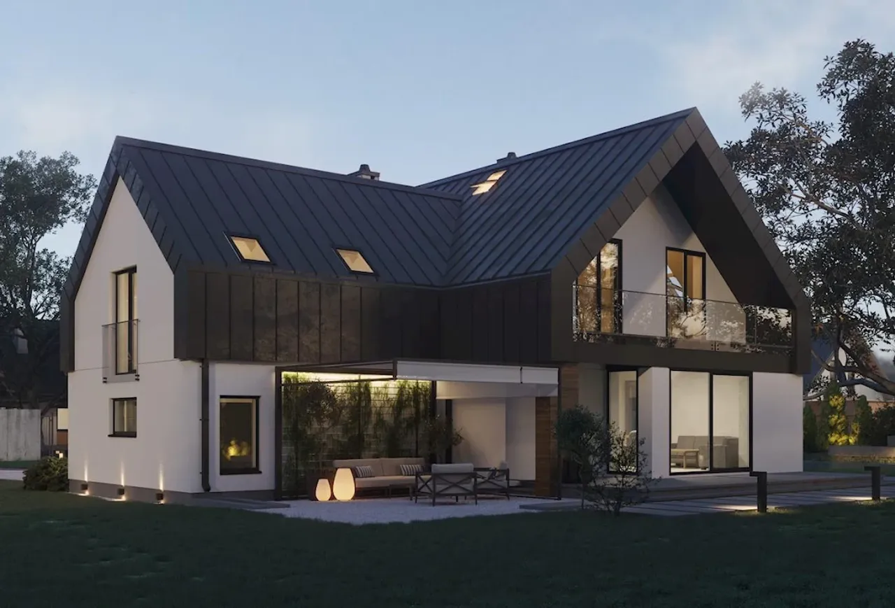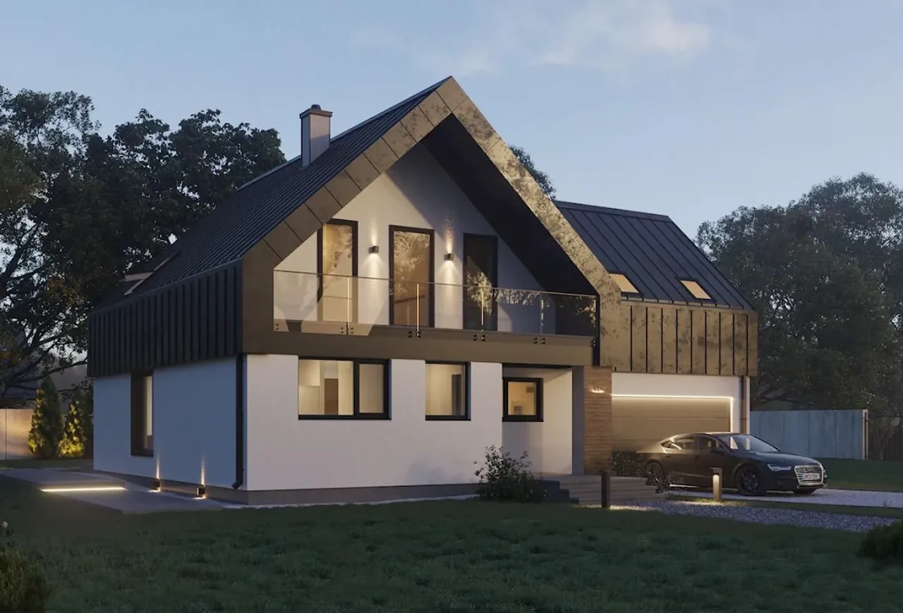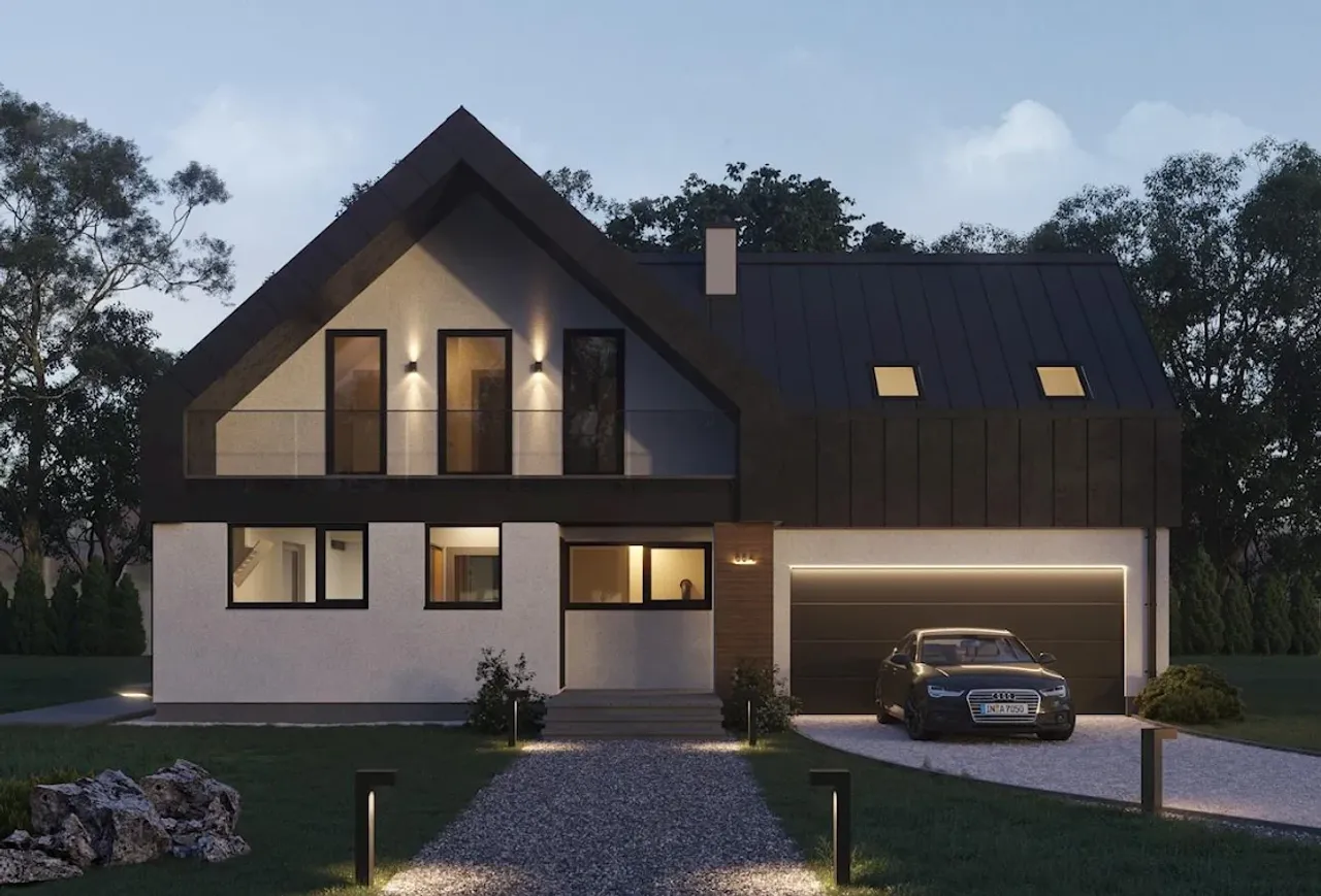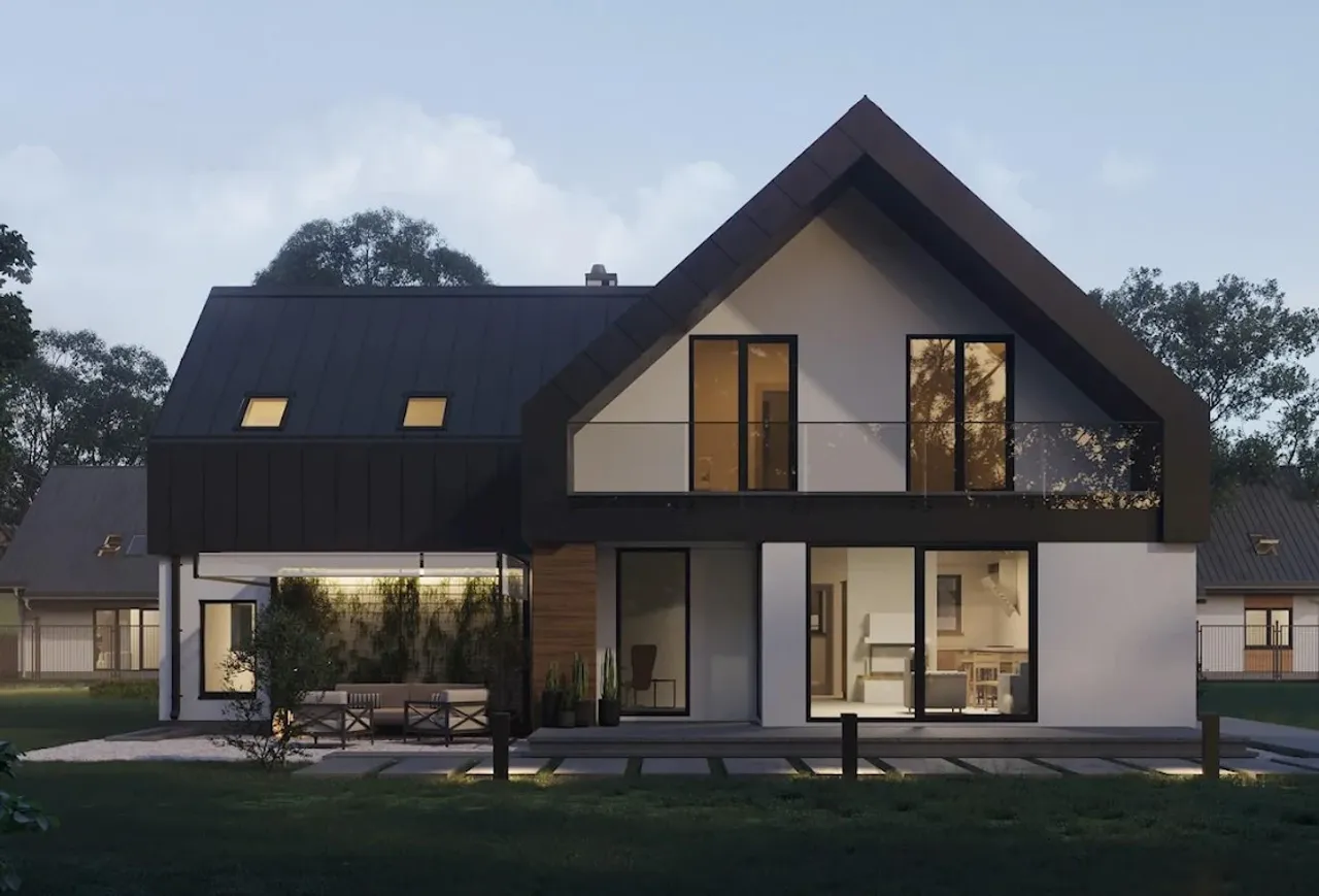 - elewacje - pokazują dokładny wygląd domu od frontu, z tyłu i z boków