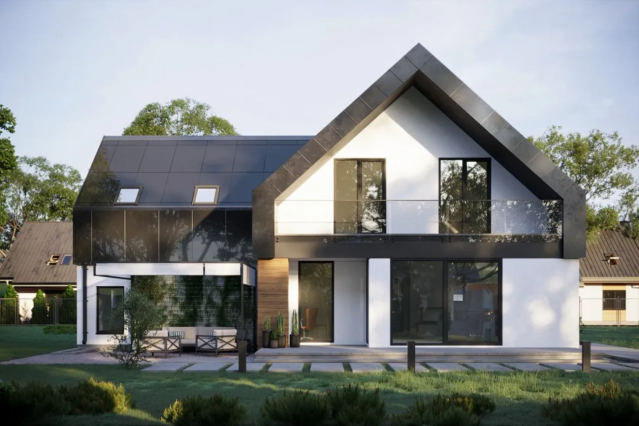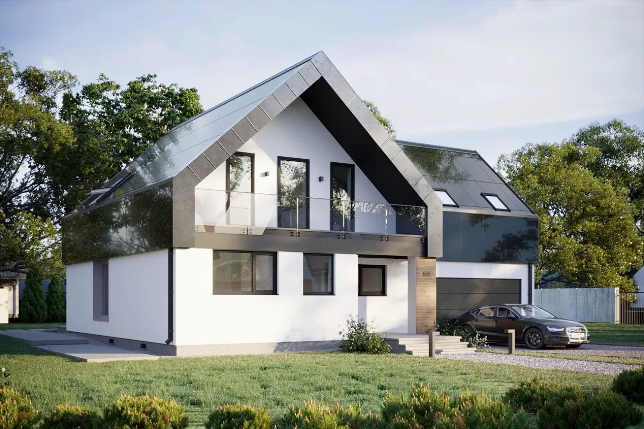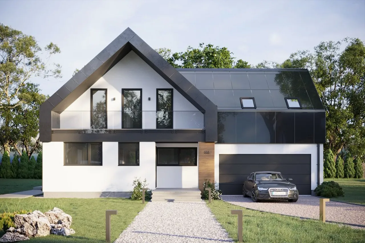 - elewacje - pokazują dokładny wygląd domu od frontu, z tyłu i z boków