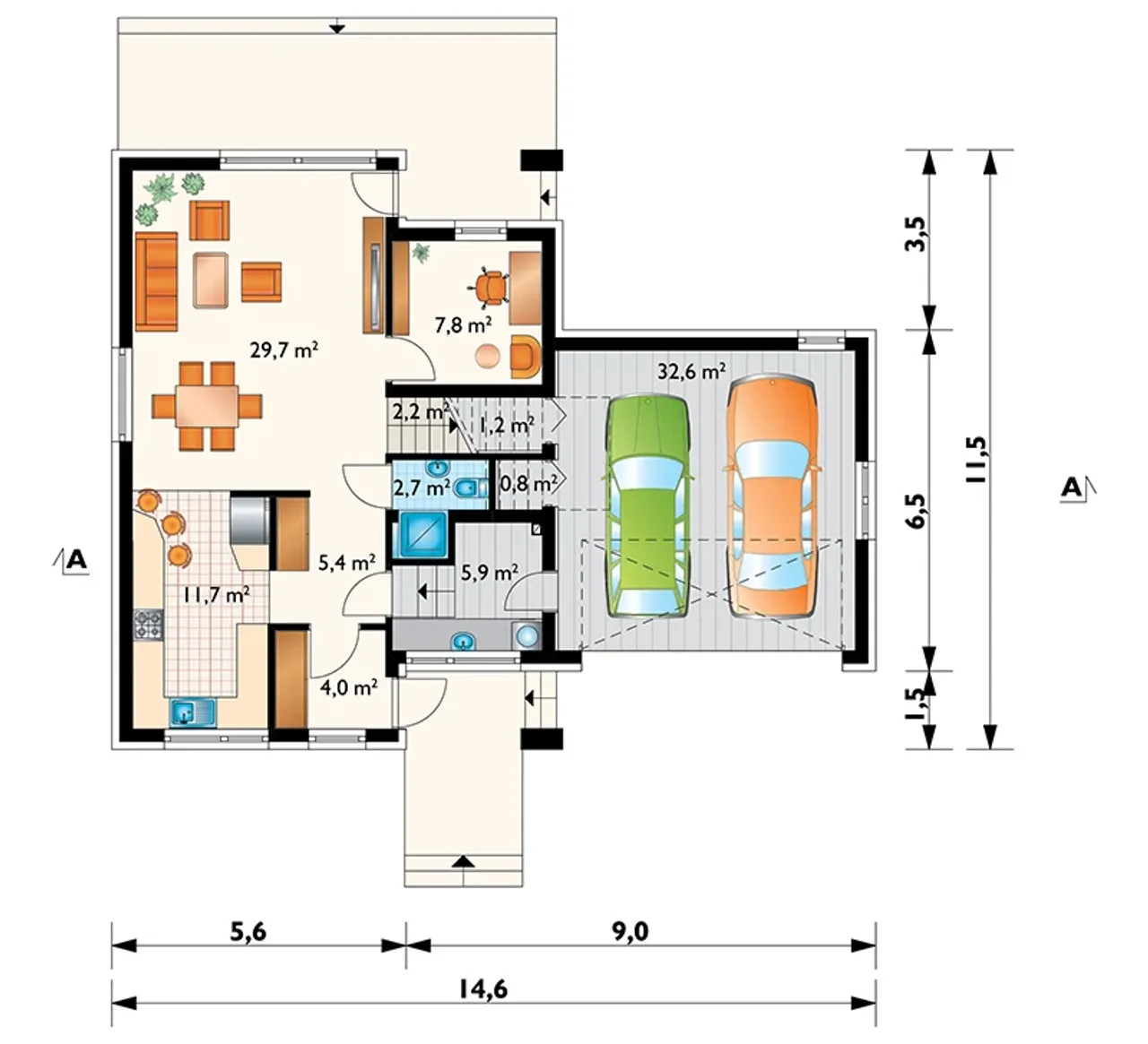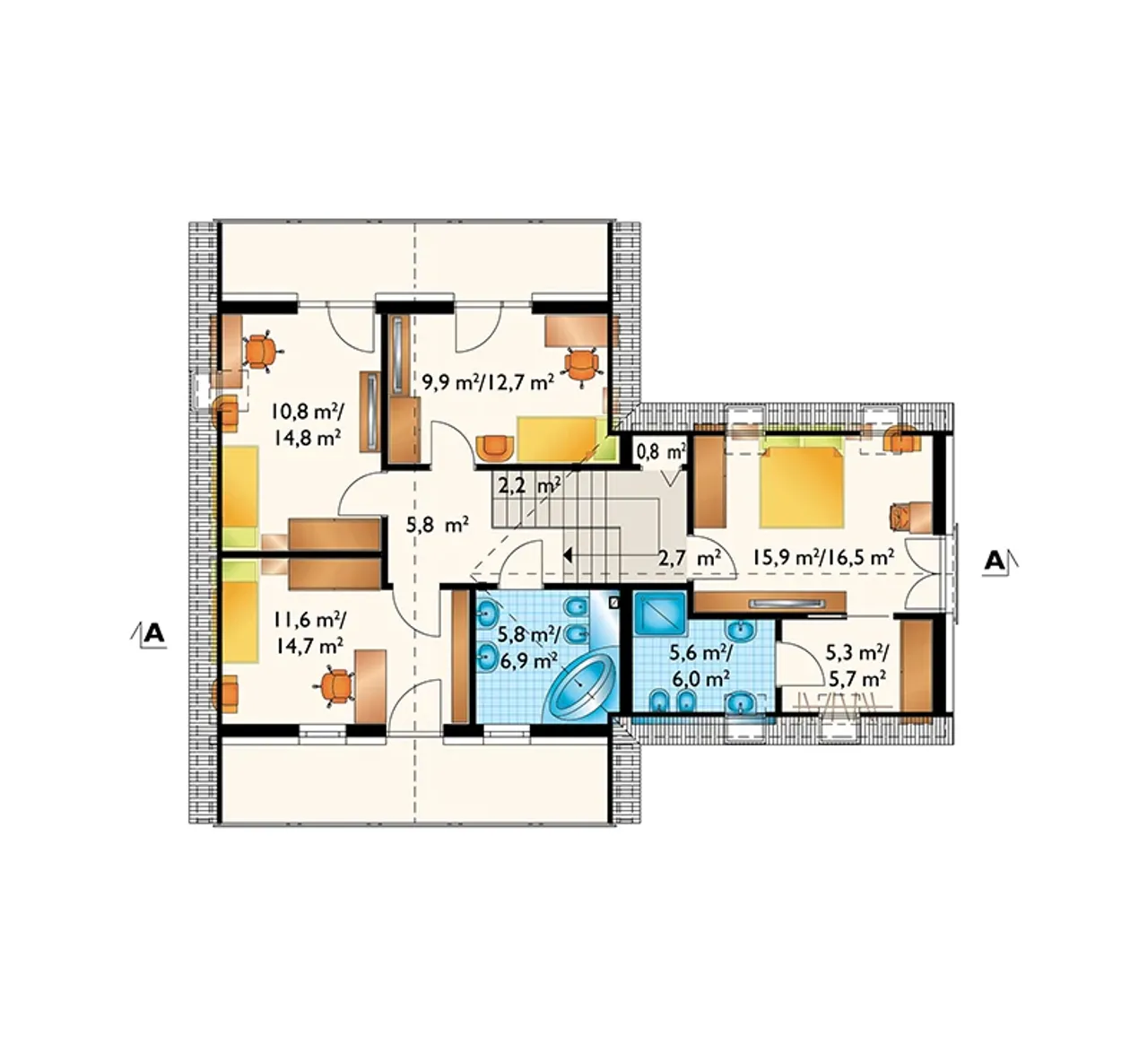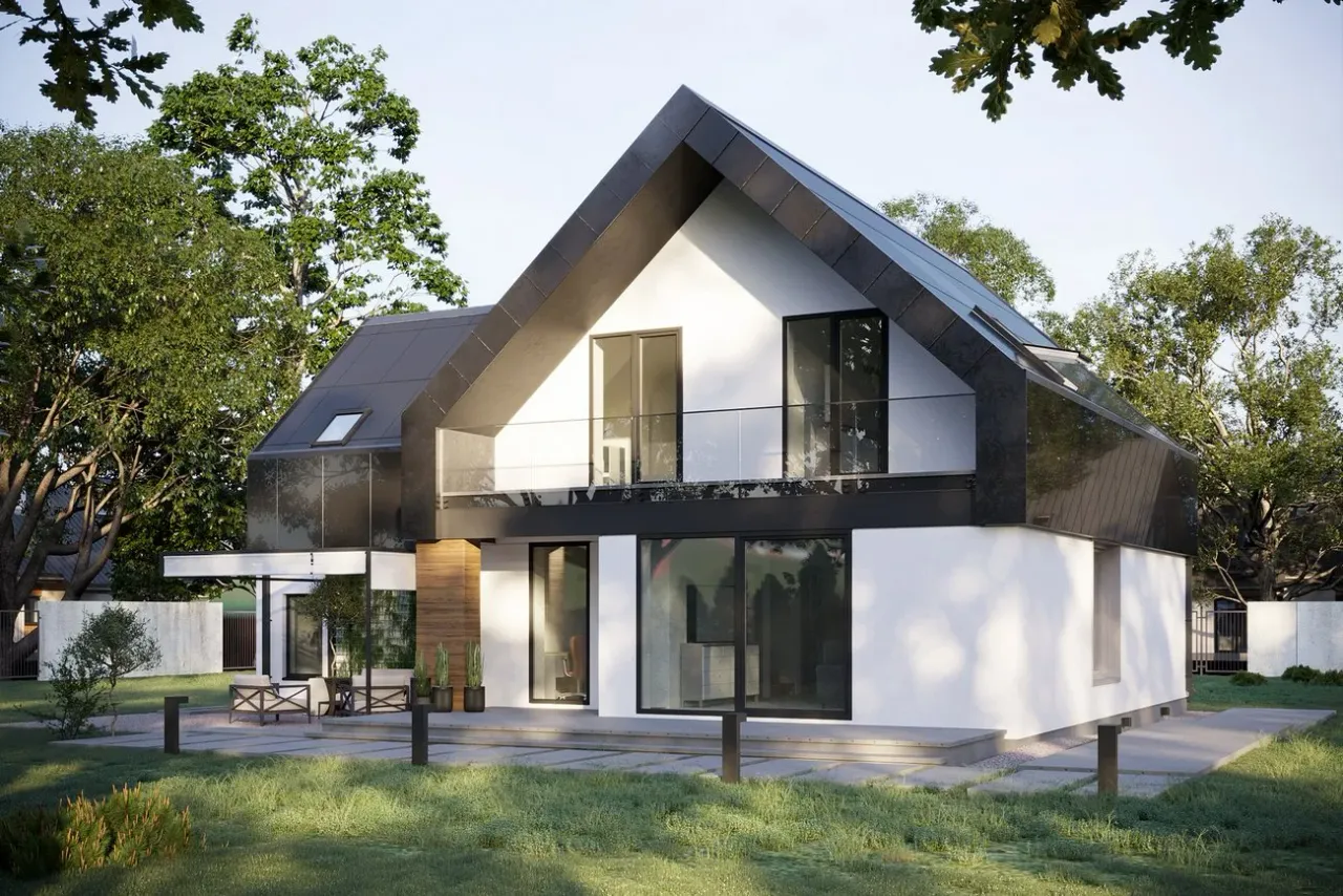 - elewacje - pokazują dokładny wygląd domu od frontu, z tyłu i z boków